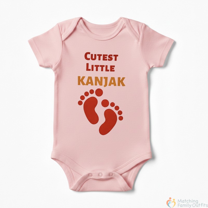 Celebrate tradition and sweetness with our “Cutest Little Kanjak” Baby Romper, designed to make your little one the star of Kanjak and Navratri celebrations. Featuring an adorable “Cutest Little Kanjak” print, this romper is perfect for family gatherings, festive photoshoots, and creating precious memories.