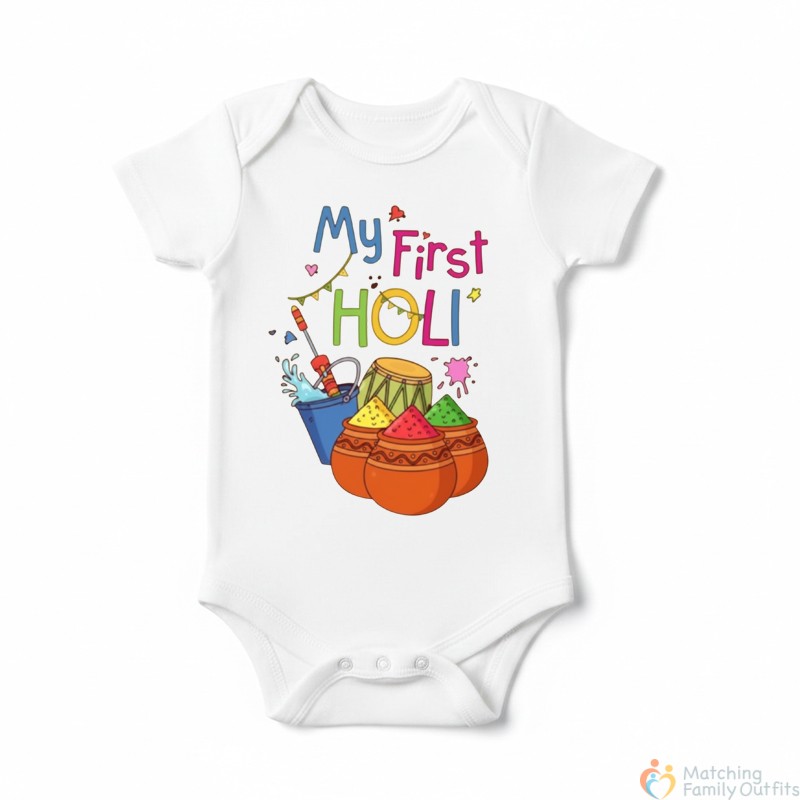 Make your baby’s first festival extra special with our My First Holi Baby Romper, designed to celebrate colorful memories in total comfort. Featuring a playful “My First Holi” print, this romper is perfect for festive photos, family celebrations, and gifting to new parents.